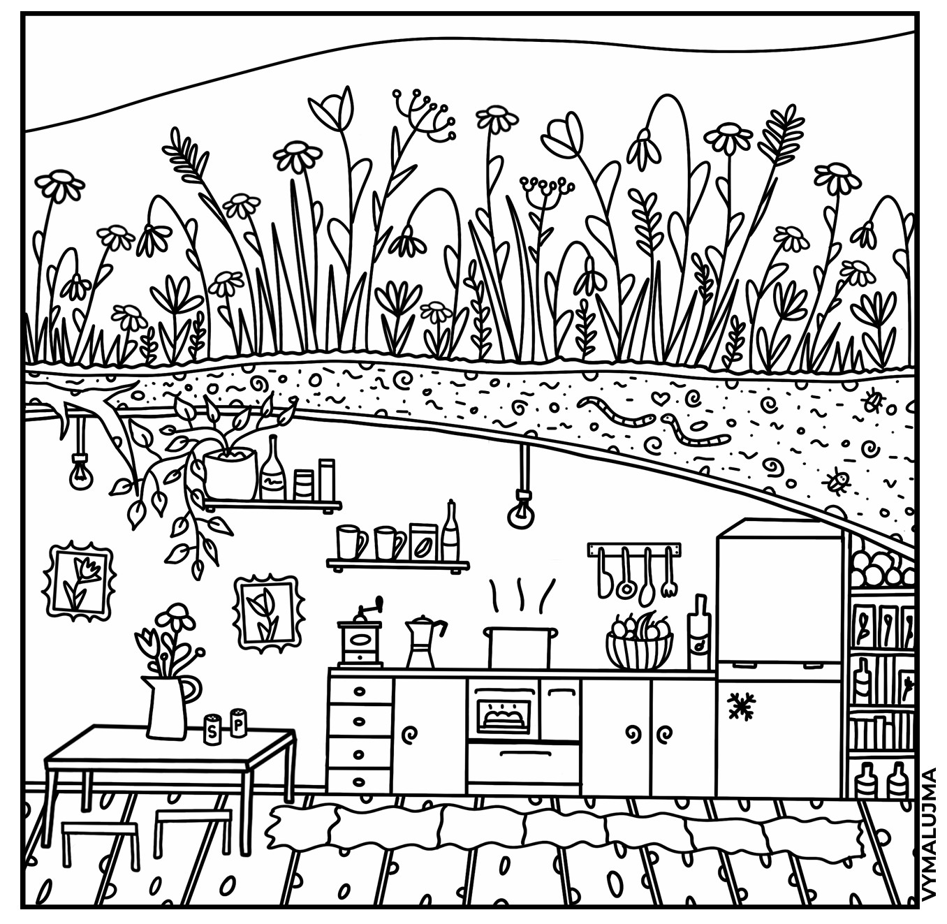 Je tu daľšia časť omaľovánky z kolekcie “Pod sekvojou” - tentokrát kuchyňa. Vymaľujte si ju len tak pre radosť, vytlačte deťom alebo zaveste hotové dielo v ráme na stenu. Omaľovánka nie je úplne obyčajná, po vymaľovaní sa premení na nádherný domček pre tie najmilšie myšky, aké si viete predstaviť. Stačí si ich tiež stiahnuť, vytlčiť, vymaľovať a malí vymyselníci sa s nimi môžu nekonečné hodiny zabávať.