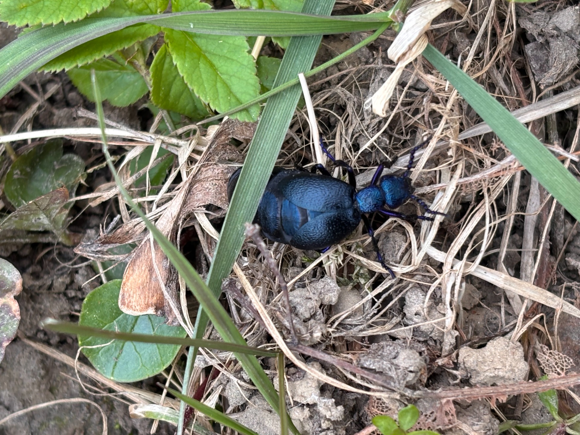 In the park, wild nature blends with sculptures, and in the air you can smell moss, flowers, history—and during my spring visit, also wild garlic. If you move quietly enough and listen closely to the whispers of the trees and grass, the spirit of the park may prepare a surprise for you. This time, it dropped a májka fialová (the violet oil beetle) at my feet—the most poisonous beetle in our region. It releases a toxic alkaloid called cantharidin, once used by poisoners. So, as my father would say: "Don't touch, just look."