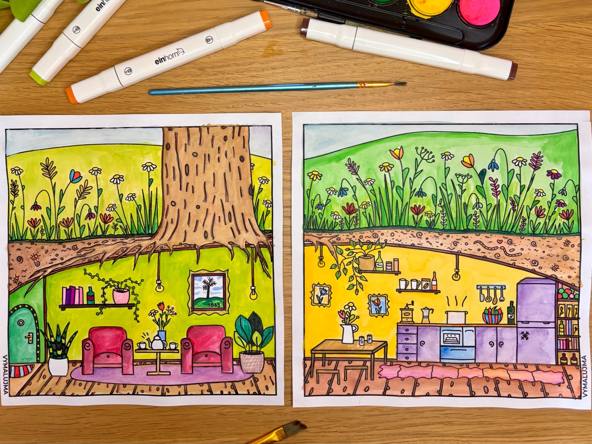 I would love for you to feel the same curiosity while coloring them—the desire to lean closer and peek at who might really live down there among the roots.